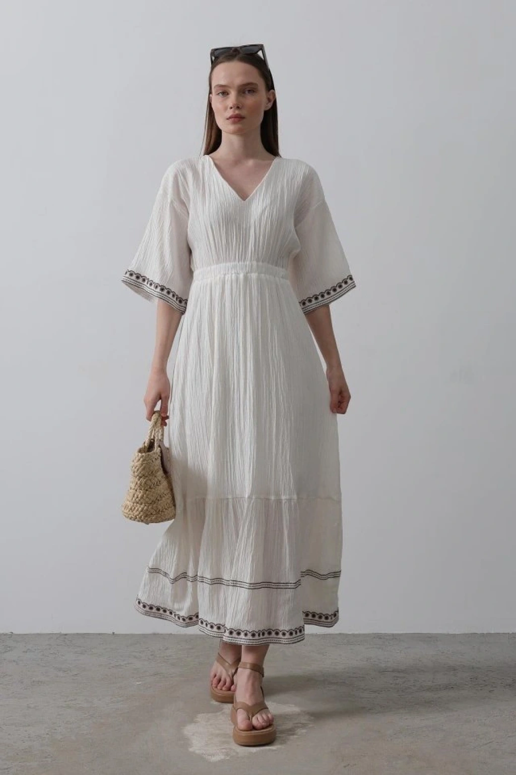 Modelin Ölçüleri: Boy:165, Kg:55, Göğüs:90, Bel:72, Kalça: 100