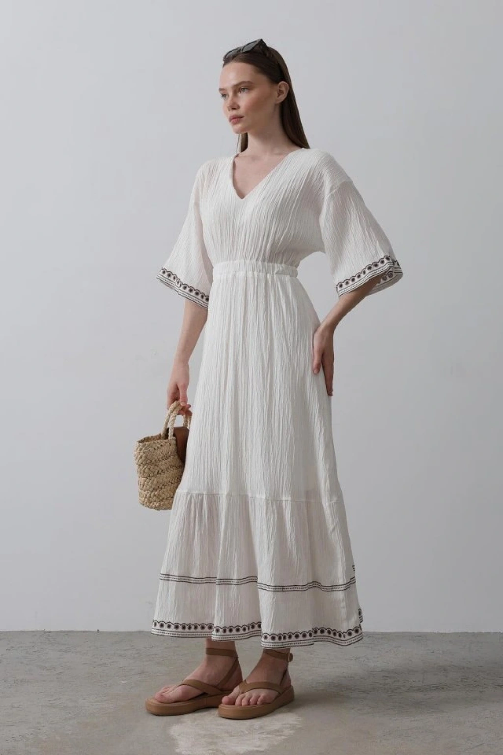 KolEtekNakışlıElbise - Beyaz