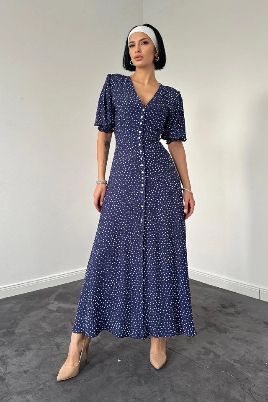 Lacivert Arka Ve Bel Ucu Gipeli Elbise