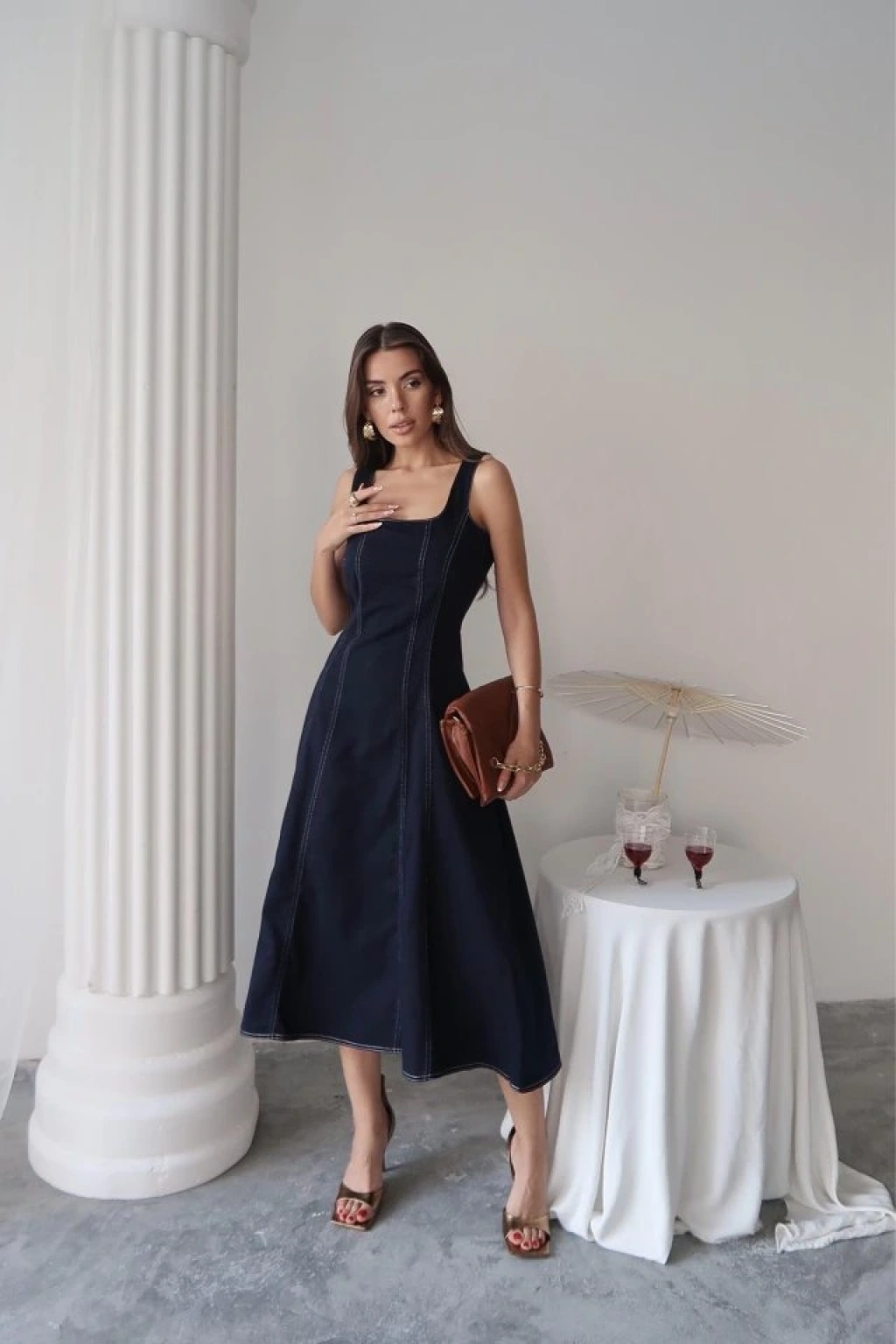 Lacivert Çift Dikişli Gabardin Elbise