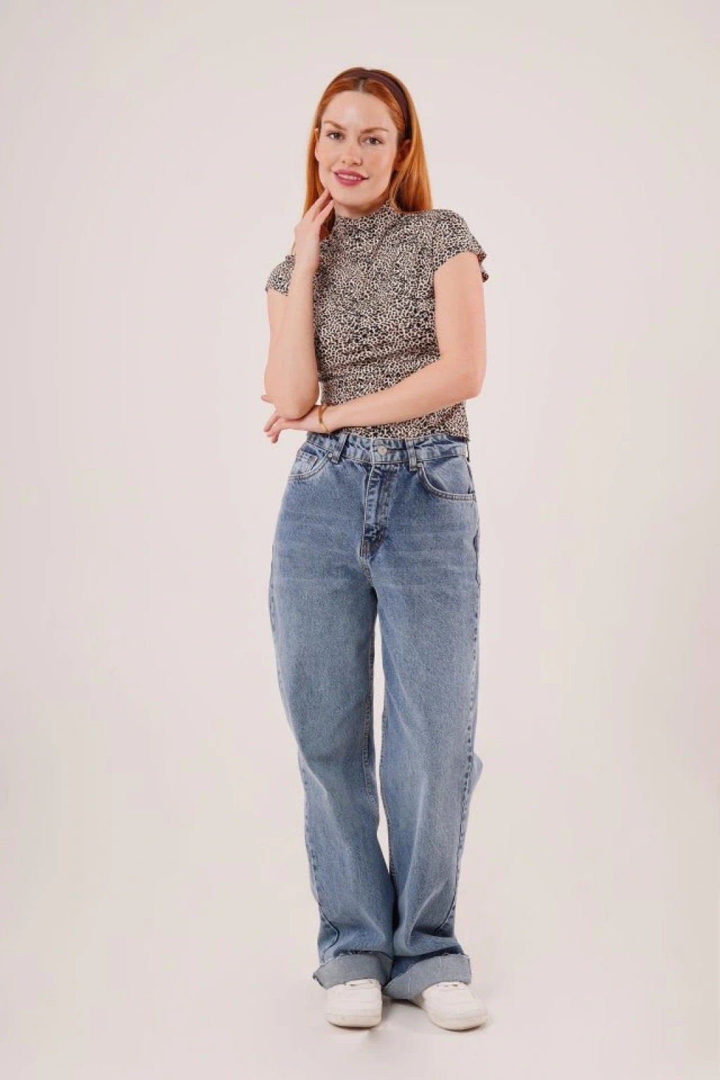 Leopar Desen Kısa Kollu Basic T-Shirt