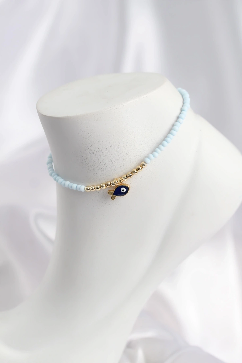 Mavi Renk Boncuklu Balık Figürlü Halhal