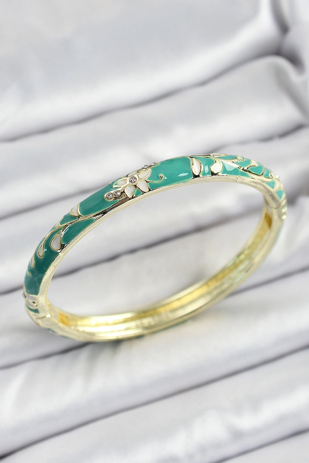 Mineli Pirinç Yeşil Çiçek Motifli Kadın Kelepçe