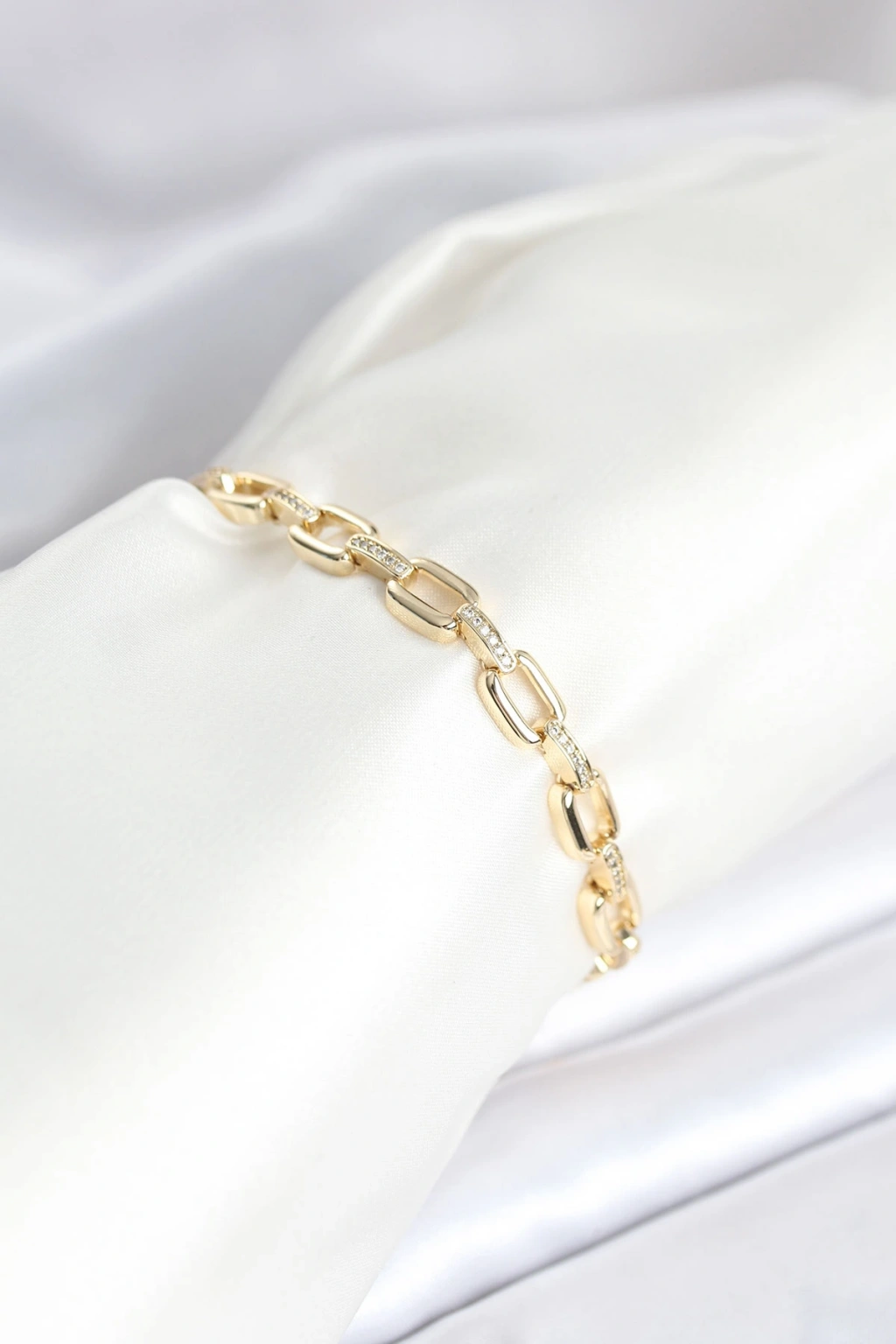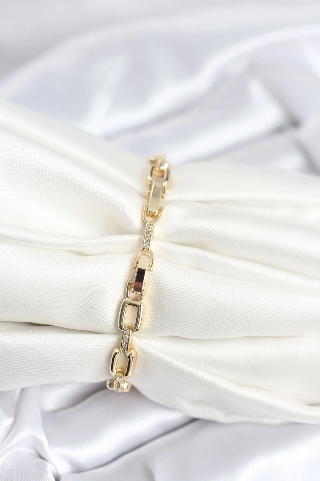 Pirinç Gold Renk Kare Zincir Model Zirkon Taşlı Kadın Bileklik