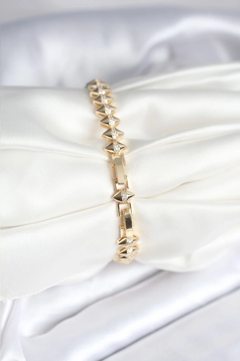 Pirinç Gold Renk Zirkon Taşlı Baklava Model Kadın Bileklik