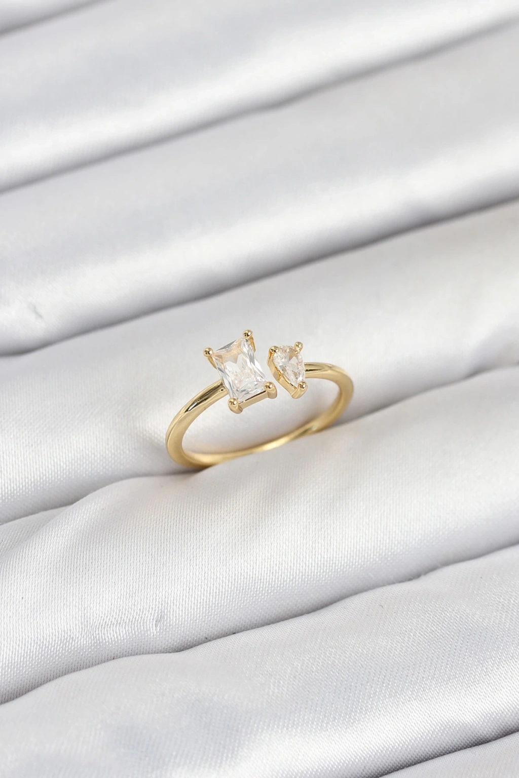 Pirinç Gold Renk Zirkon Taşlı Kadın Yüzük