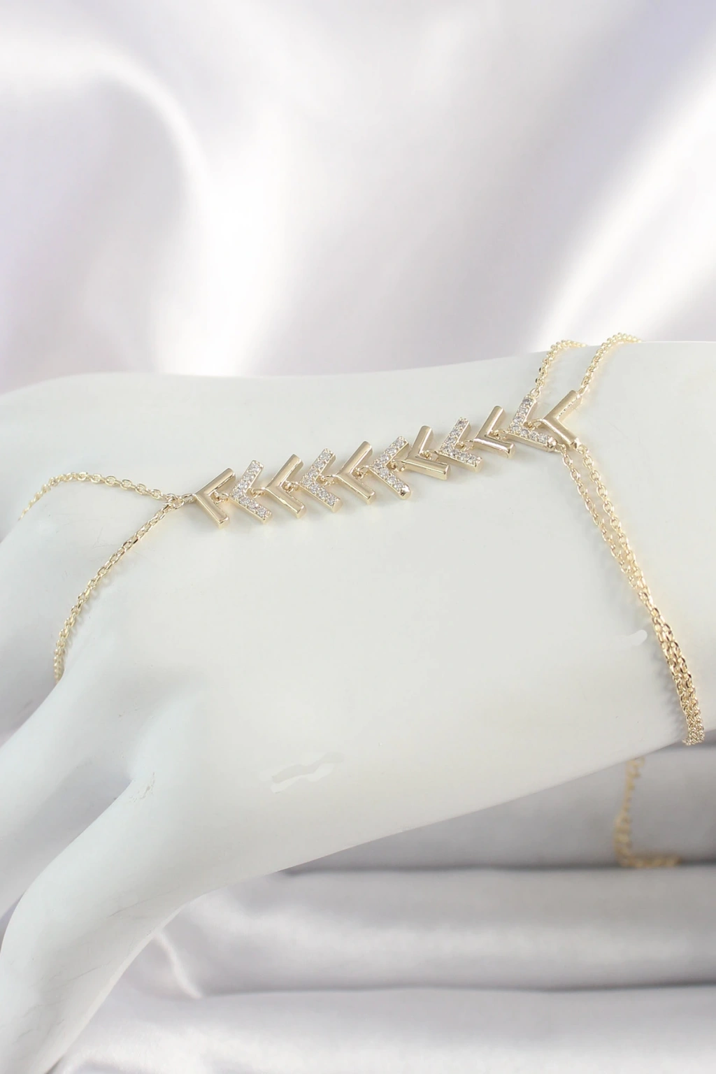 Pirinç Gold Renk Zirkon Taşlı V Model Kadın Şahmeran
