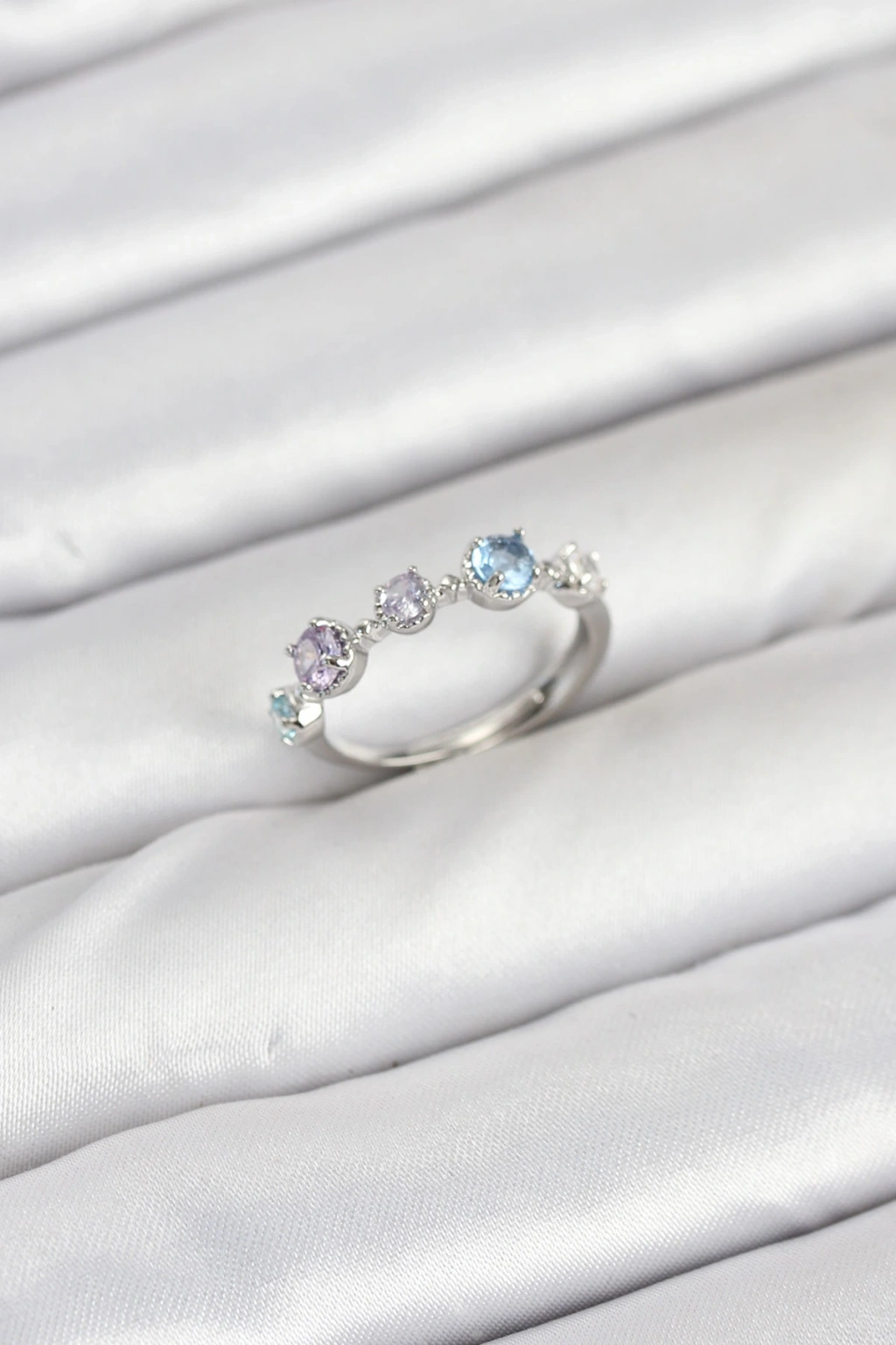 Pirinç Gümüş Renk Renkli Zirkon Taşlı Kadın Yüzük