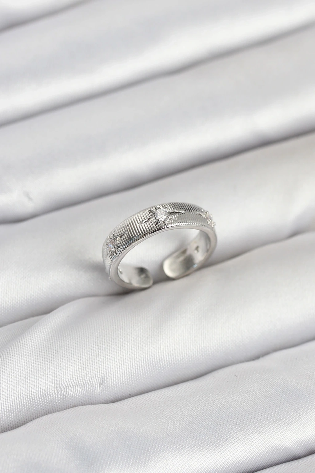 Pirinç Gümüş Renk Zirkon Taşlı Kutup Yıldızı Model Kadın Yüzük