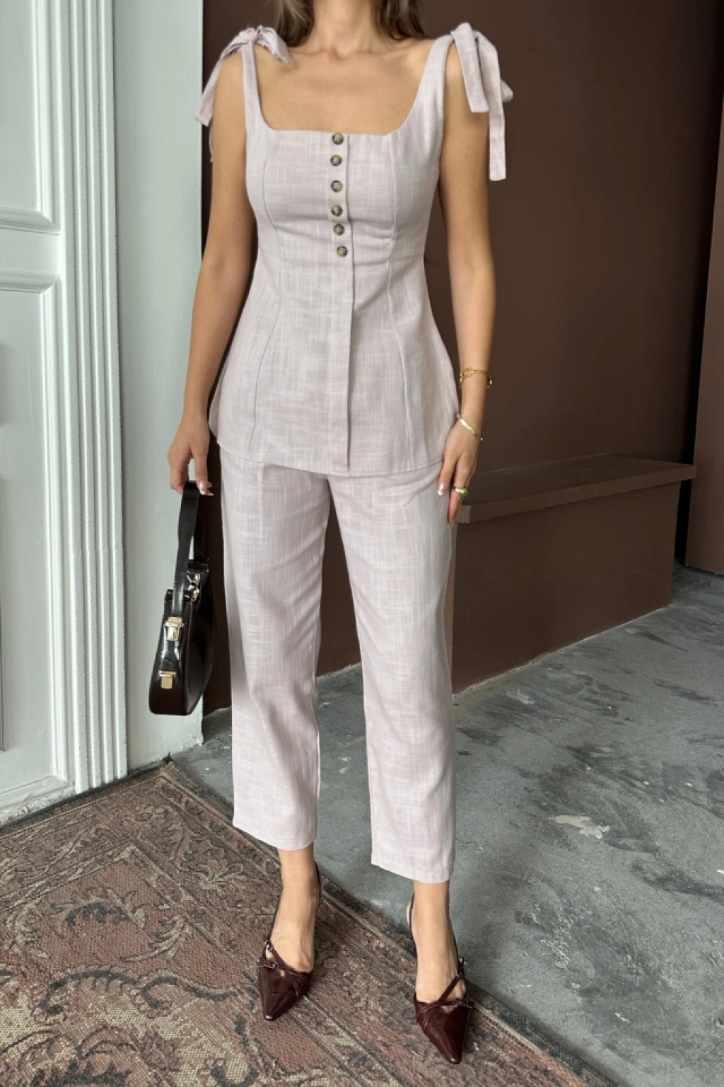 ŞANTUK KETEN YELEK GÖRÜNÜMLÜASKILI BLUZ - PANTOLON TK - Lila