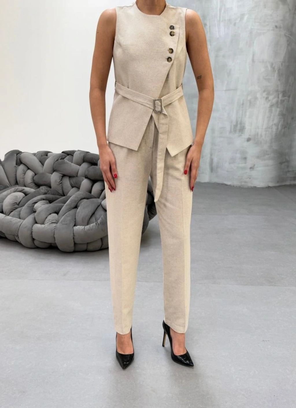 Ti̇na Asi̇metri̇k Keten Yelek Pantolon Takim
