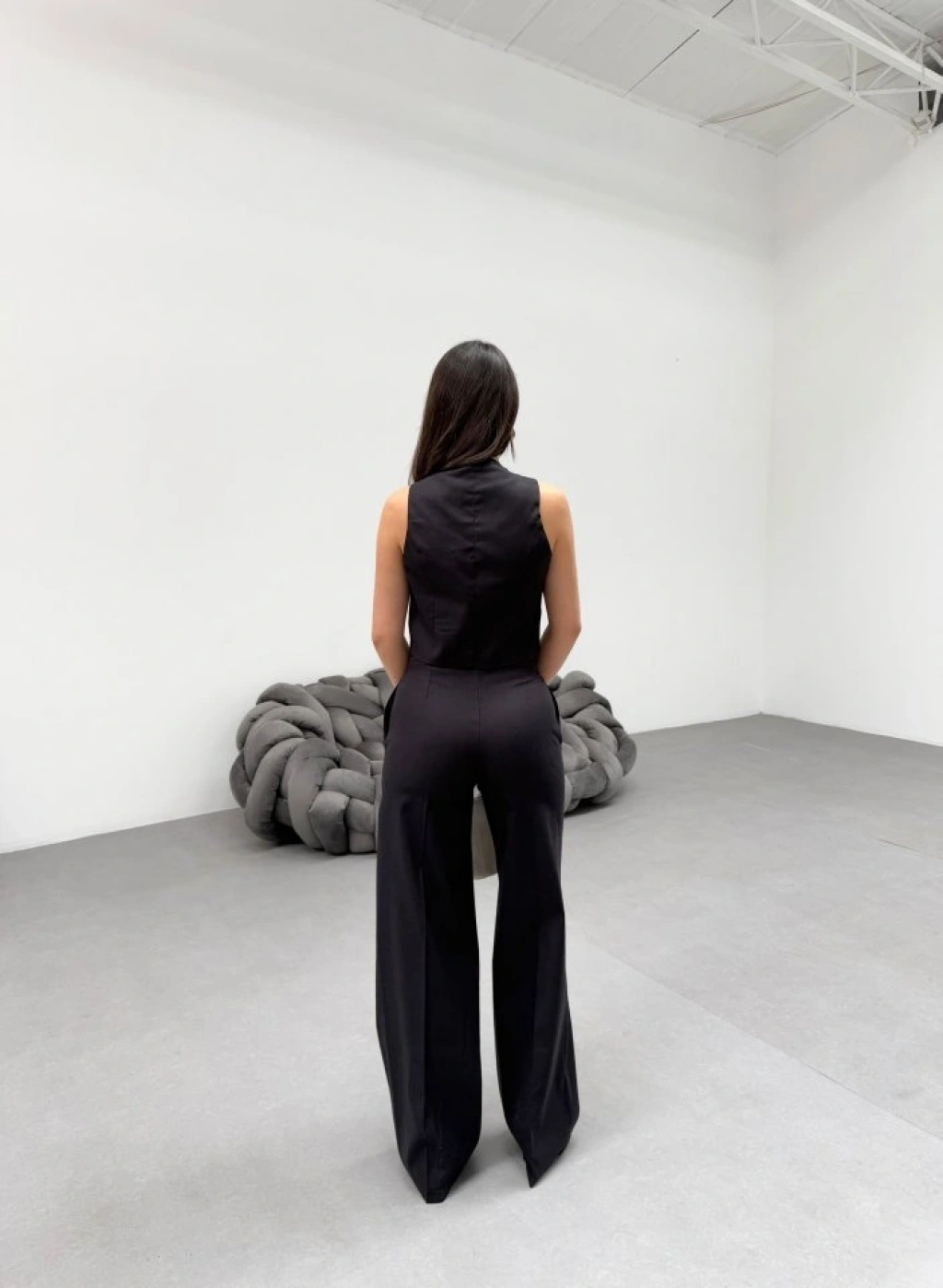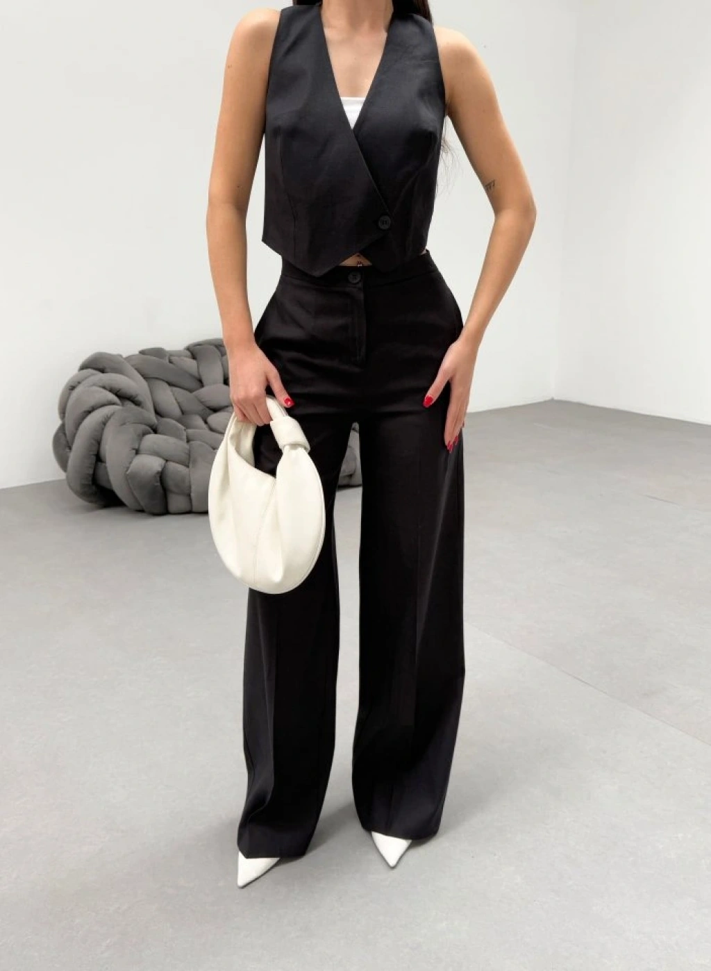 Toskana Keten Kruvaze Yaka Tek Düğmeli̇ Yelek Pantolon Takim