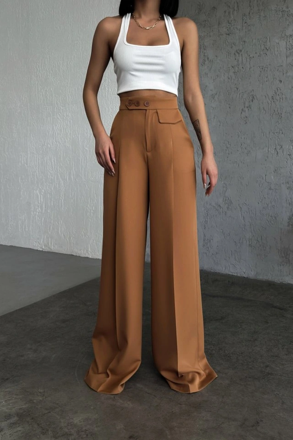 Üç Düğme Detayli Palazzo Pantolon