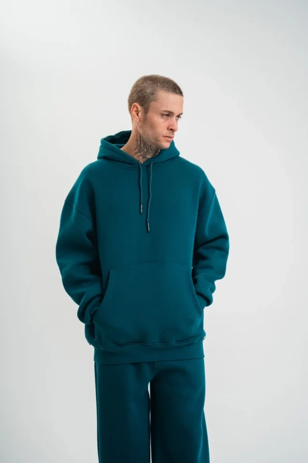 Unisex Double Oversize Kapşonlu Basic SweatShirt Koyu Deniz Yeşili
