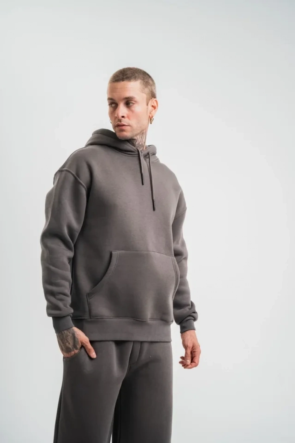 Unisex Double Oversize Kapşonlu Basic weathirt Füme