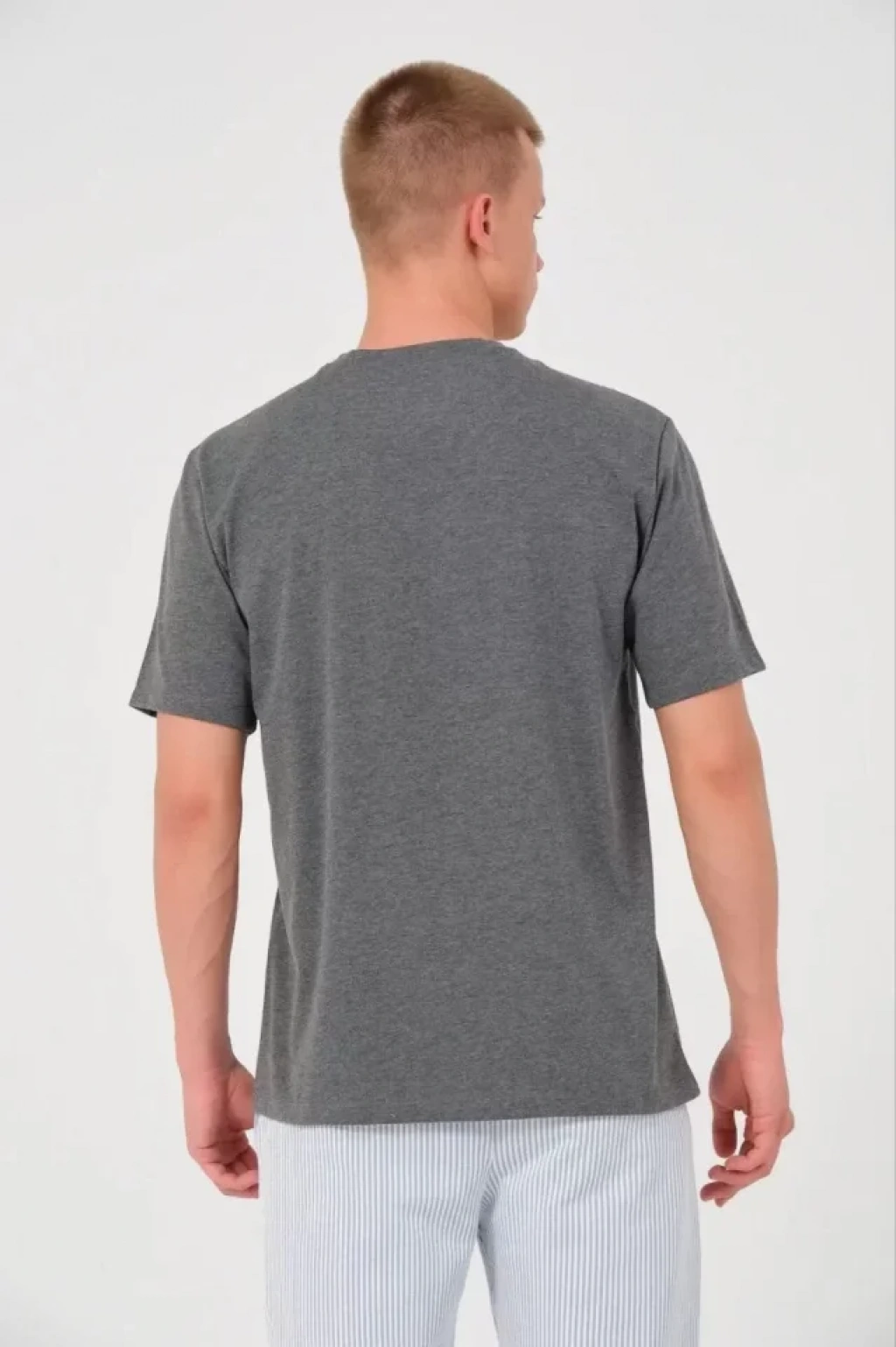 Unisex Oversize Düz Bisiklet Yaka Thirt Gri
