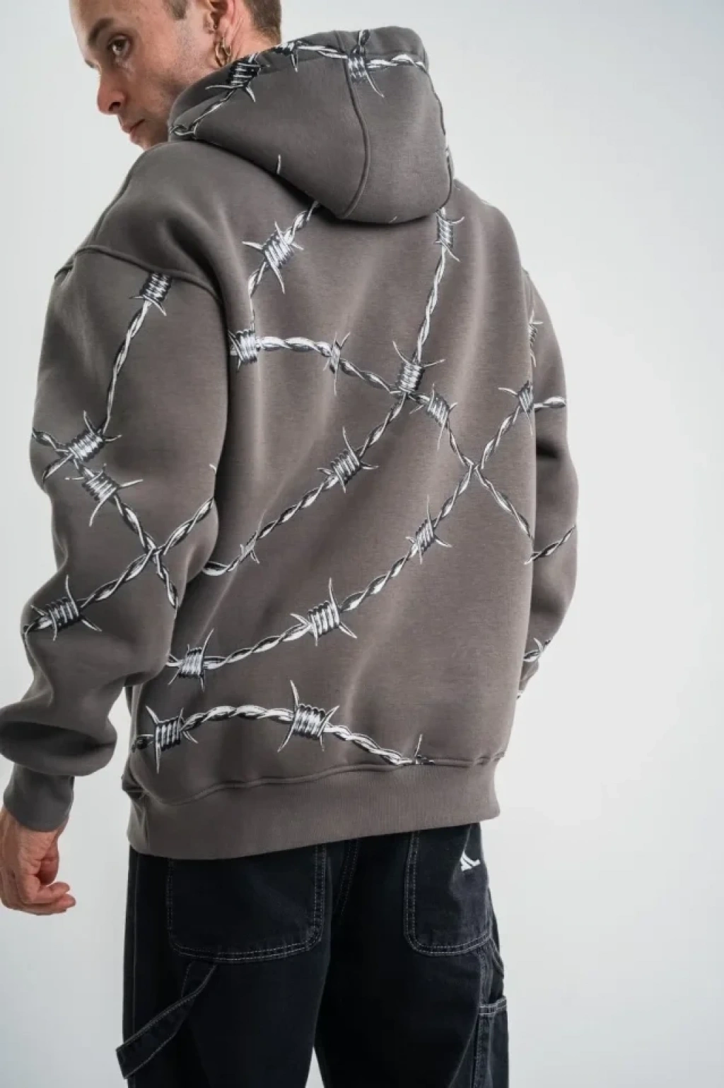 Unisex ırt Baskılı Kapüşonlu Üç İplik Oversize weatshirt Beyaz