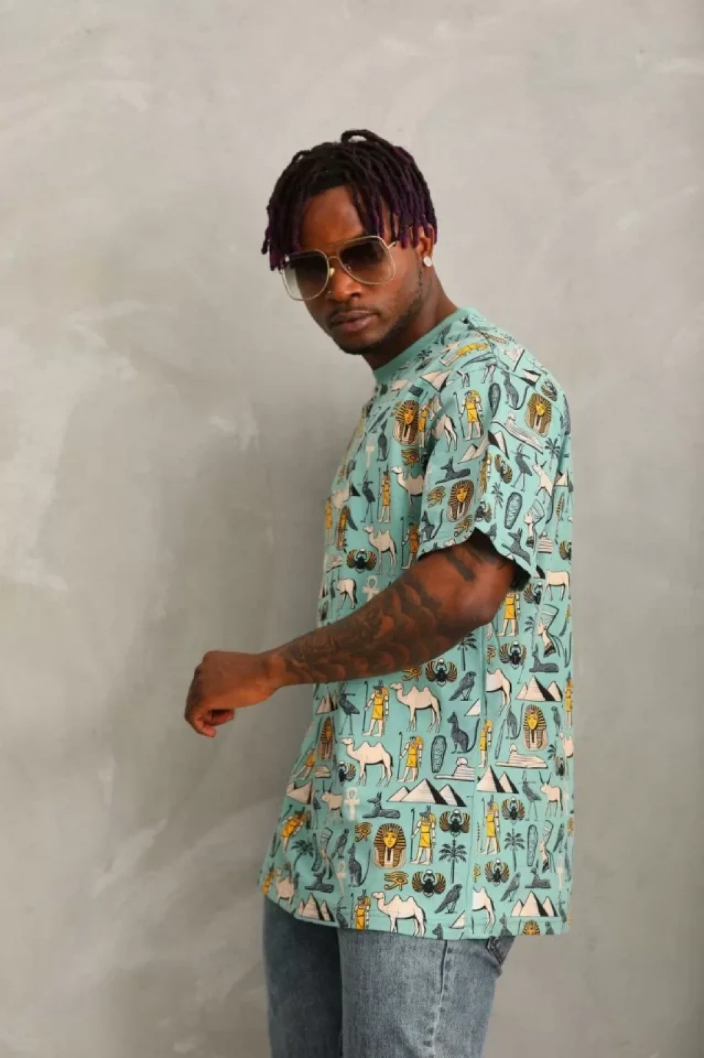 Erkek Bisiklet Yakalı ırt Baskılı Oversize Thirt iyah
