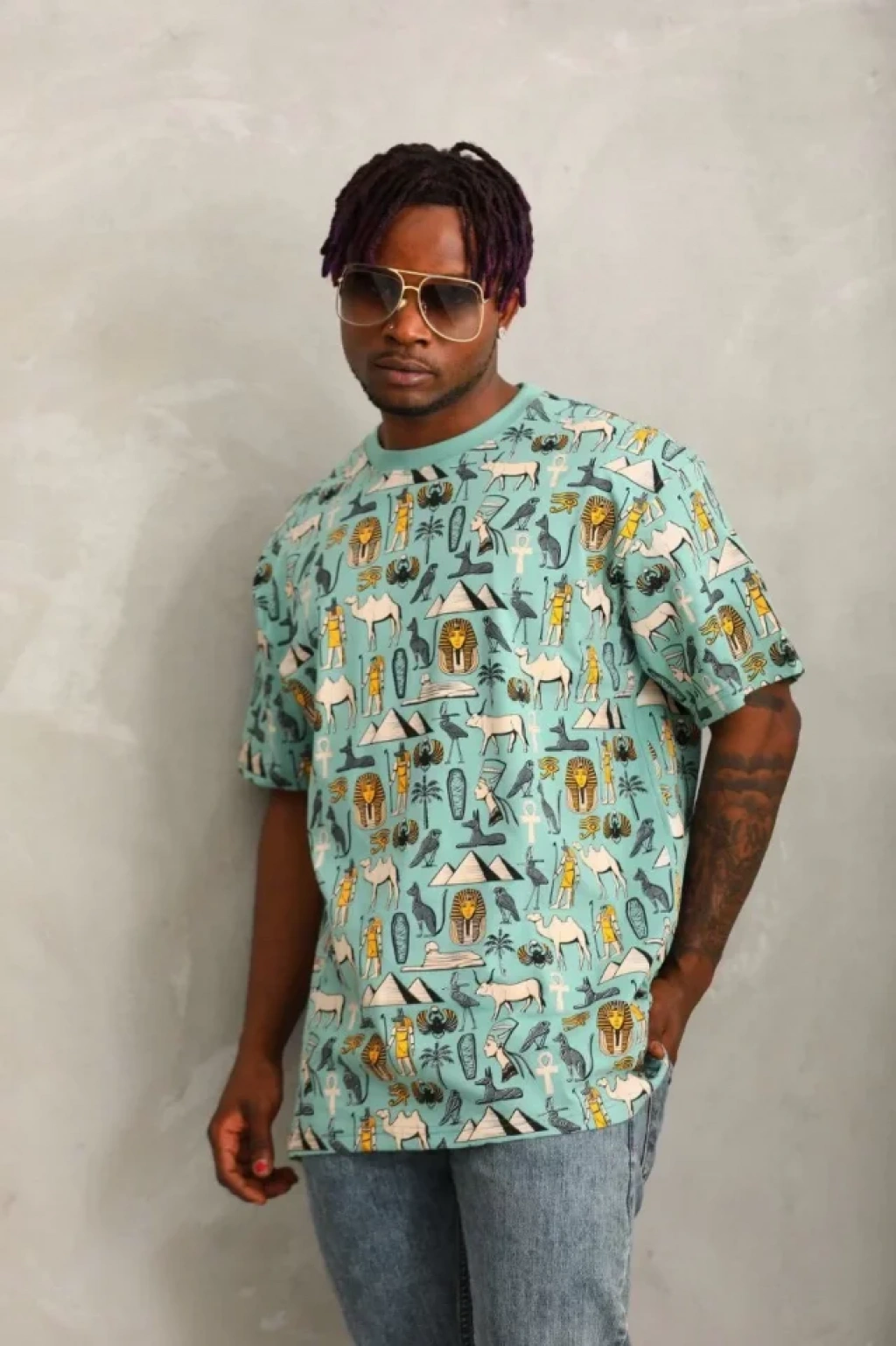 Unisex Oversize Baskılı Bisiklet Yaka Thirt iyah
