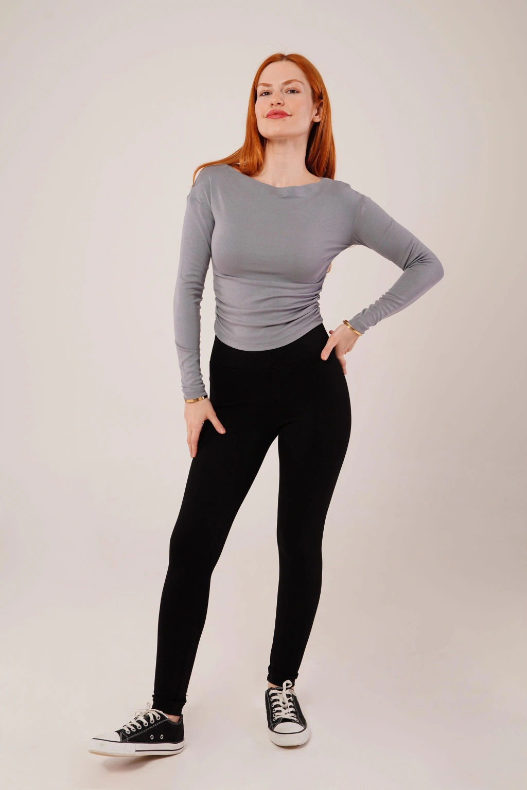 Yaka Detay Uzun Kollu Basic Gri Bluz