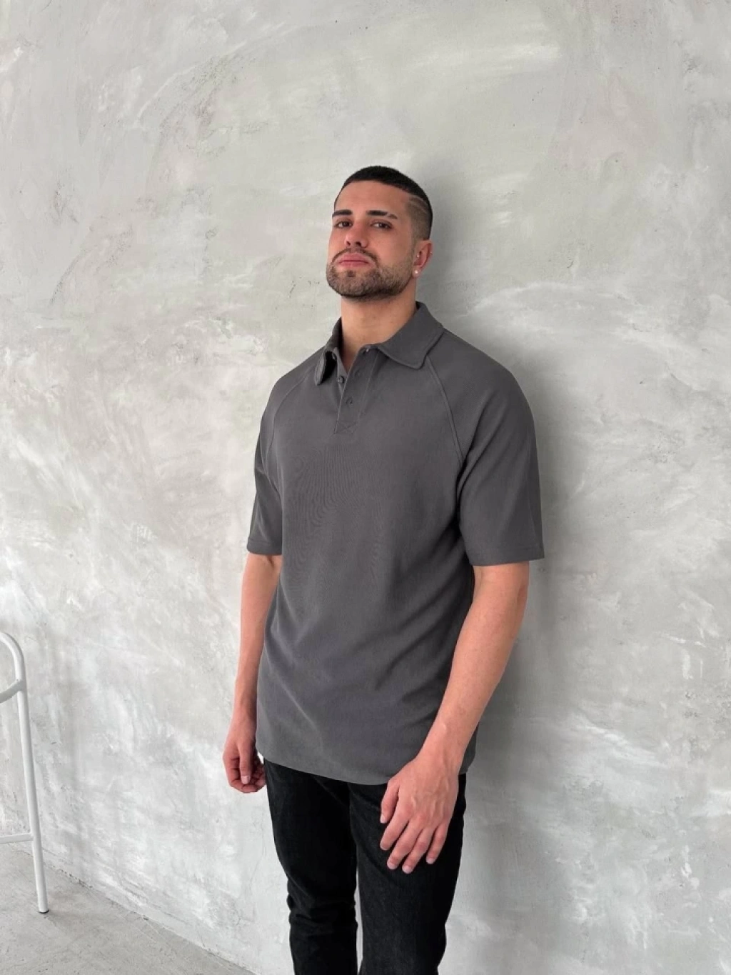 Yakalı Patlı Kısa Kol Tshirt Antrasit