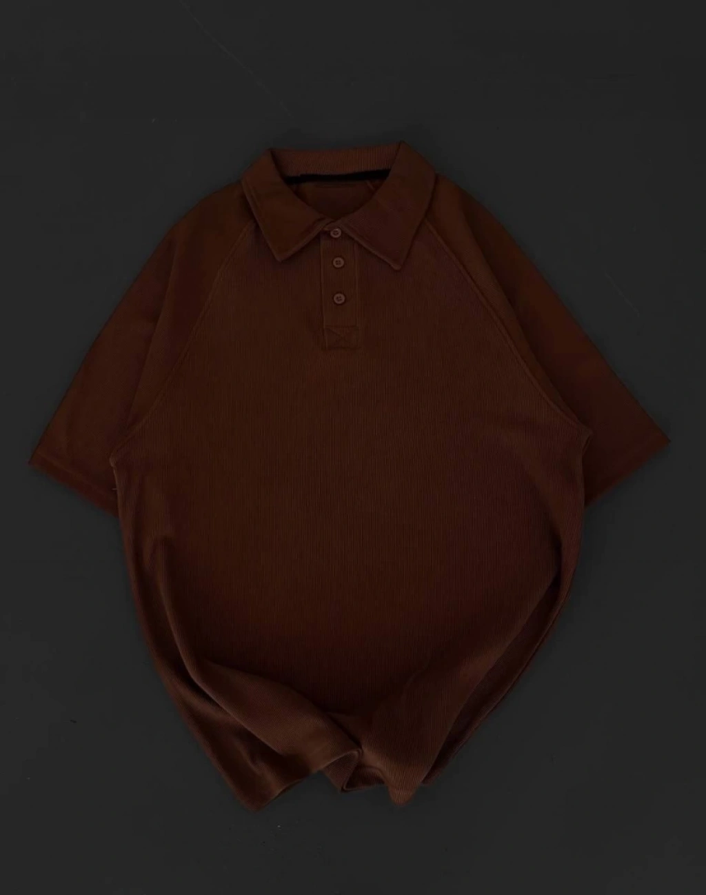 Yakalı Patlı Kısa Kol Tshirt Kahverengi