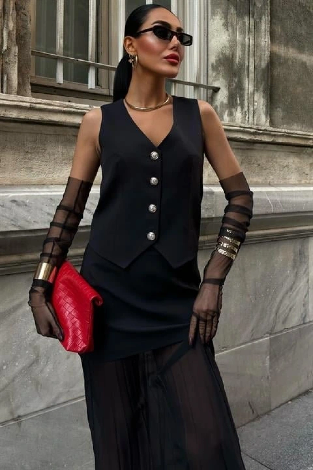 Yelek Ve Pilise Etekli Premium Takım 10096