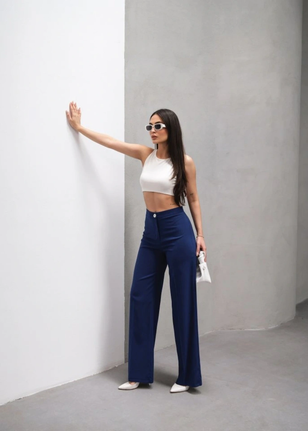 Yüksek Bel Straight Fit Palazzo Pantolon